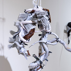 This exhibition features Ruben Ulises Rodriguez Montoya, whose sculptural installations blend mythology, science fiction, and salvaged materials to explore border culture, environmental collapse, and the resilience of communities of color.